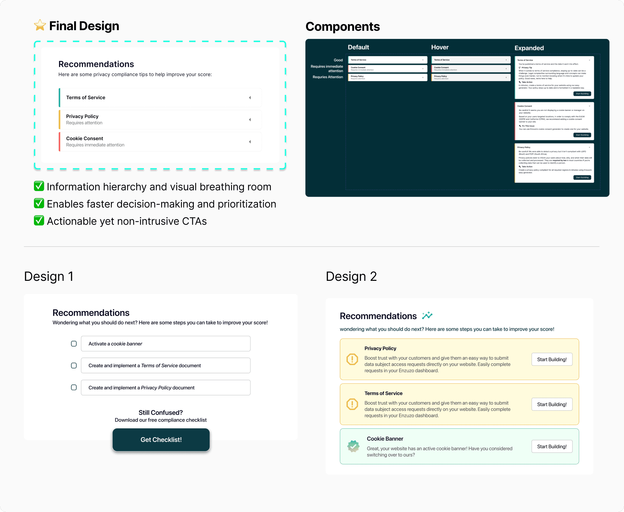 Later iterations focused on organizing dense information to stay scannable and approachable.