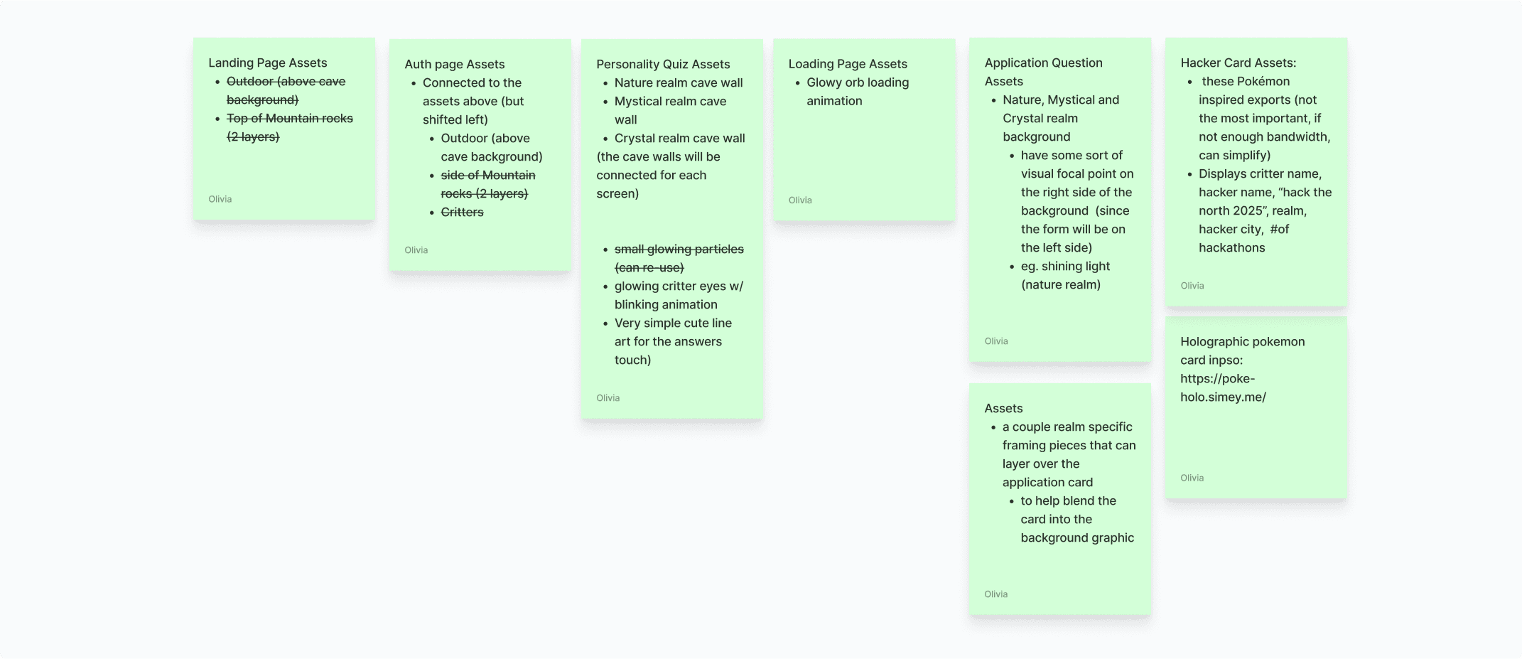 In past years, we created small digital mementos for hackers to share online, but they didn’t gain much traction. This year, inspired by Figma’s Figpals, I proposed a more engaging idea: a digital companion that follows applicants throughout their journey. After defining the algorithm for the personality quiz, I mapped out the traits each Hack Pal could have. Based on users’ answers, they are then assigned a specific Hackpal that matches their personality.