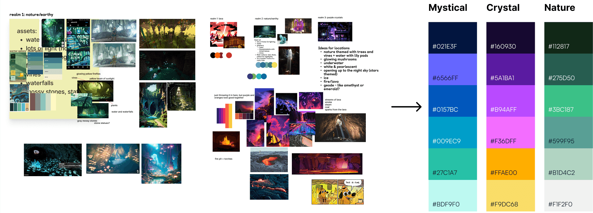 After discussion, the design team decided that cave exploration would be a fresh and exciting direction. This concept opened up many creative possibilities for our digital products, evoking feelings of exploration and "discovering the unknown". We envisioned three distinct cave themes, each with its own colour palette and visual style to add variety and interest.