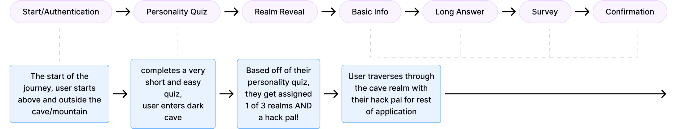 I wanted the application to almost feel like a first person adventure game, so I mapped narrative moments to each step of the user flow, letting applicants "explore" as they moved through the process.