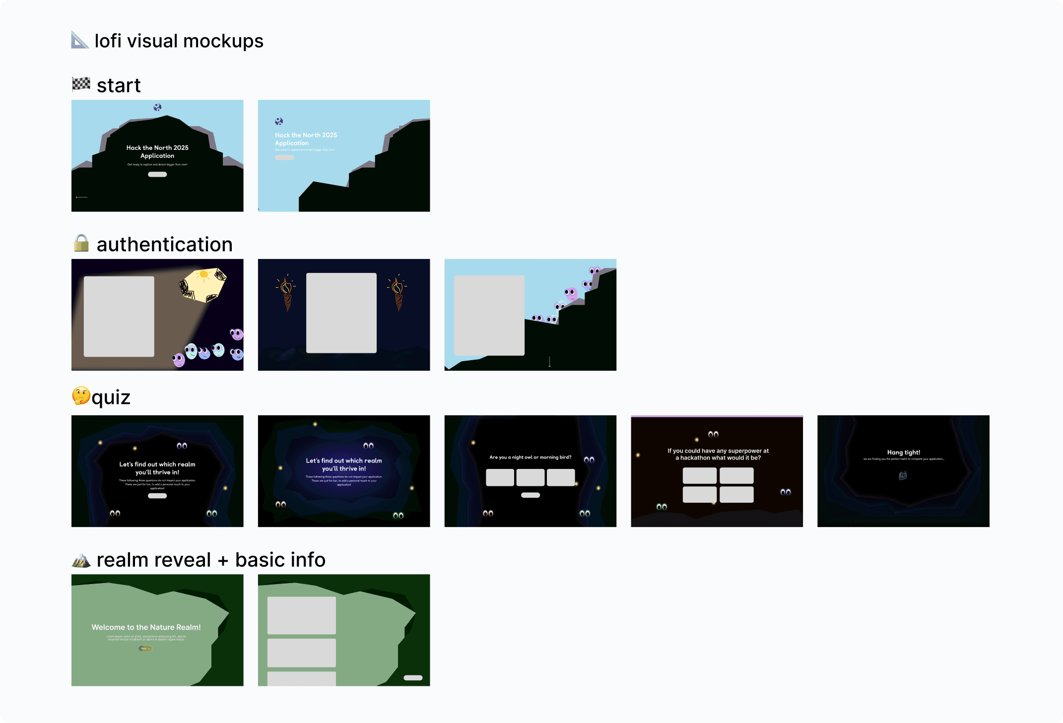 Each year, we include a customizable element that makes the application process more fun and unique. After noticing the rise in popularity of personality quizzes, Buzzfeed quizzes, etc. I chose to create Hack the North's own personality quiz. Additionally, this provided the perfect opportunity to tie in our concept of having three realms.