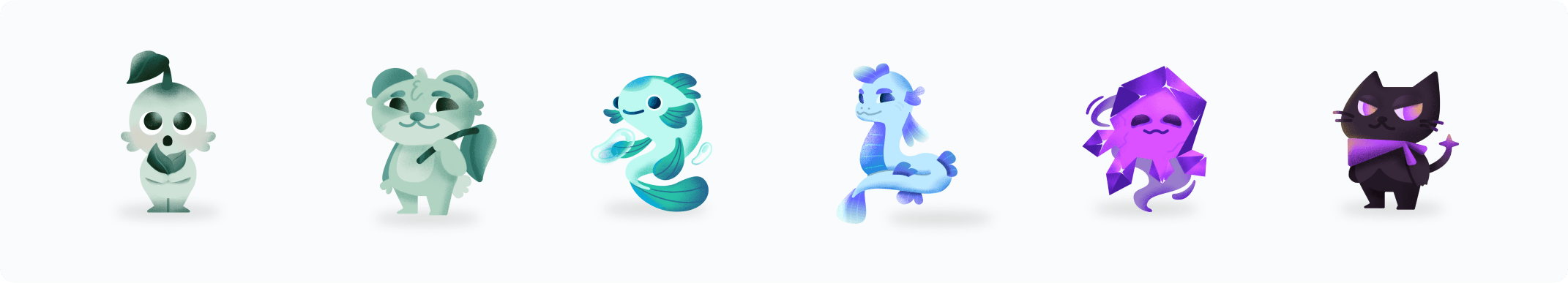 Through the personality quiz, users are guided to one of three magical realms. Here, you’ve uncovered the Biolume Grotto. Each realm is home to a variety of companions, your loyal Hackpals, who will journey with you every step of the way!